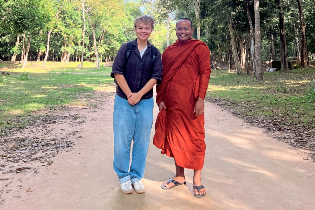 Mein Highlight war der Besuch einer Tempelanlage aus dem 6. bis 8. Jahrhundert in Kampong Thom, einer zentralen Provinz. Hier lernte ich auch einen Mönch kennen, der nicht nur fließend Englisch sprach, sondern auch unbedingt mit jedem Touri auf dem Weg ein Bild machen wollte. Auch wenn es immer aufregend ist, neue Provinzen zu entdecken, freue ich mich meistens schon ein bisschen darauf, wieder nach Phnom Penh zurückzukehren. Jetzt wo die Regenzeit vorbei ist, wird man immer öfter von einem wolkenlosen blauen Himmel begrüßt. Die Parks nahe dem Königspalast schimmern satt grün und das Wasser des Tonle Sap wirkt nicht ganz so braun-grau wie sonst.