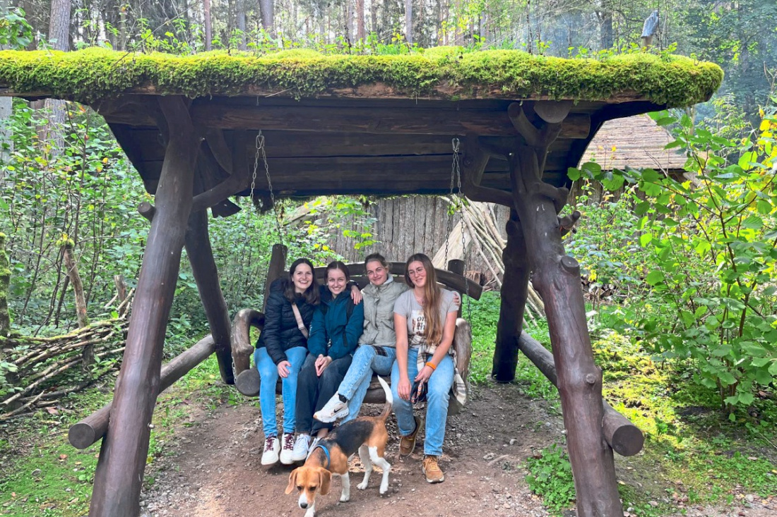 Besonders spannend war außerdem eine praktische Woche auf einer Kuhfarm und in der Pferdeklinik. Dort durften wir viele Aufgaben selbst übernehmen, vom Verabreichen von Medikamenten bis hin zu grundlegenden Untersuchungen. Es ist schön zu sehen, wie sich das theoretische Wissen aus dem Studium immer mehr in echte Routine verwandelt. Neben dem Uni-Alltag wird auch viel mit den Freunden unternommen, so haben wir direkt zu Beginn des Semesters einen Ausflug in den Naturpark Tērvete gemacht, der nicht weit von meiner Stadt Jelgava entfernt liegt. Jelgava selbst ist eine überschaubare Universitätsstadt, deren bekanntestes Wahrzeichen das auf einer kleinen Flussinsel gelegene Schloss ist, und wie jedes Jahr schmückt nun auch wieder ein großer, hell erleuchteter Weihnachtsbaum den Marktplatz.