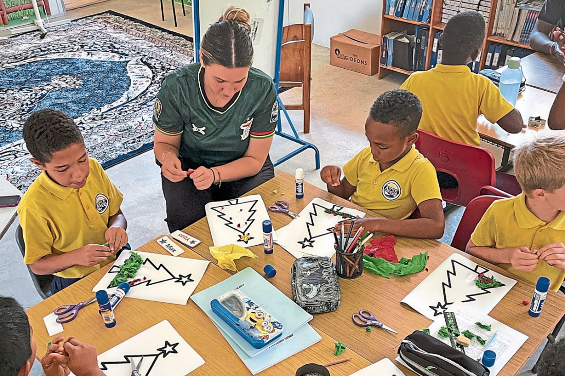Mein Aufgabenbereich ist an der Schule und umfasst die Klassen 1 bis 7 in Kunst zu unterrichten, im Schwimmunterricht zu helfen, Tests zu korrigieren und im Unterricht, wie Englisch oder Mathe die Klassenlehrerin zu unterstützen.
