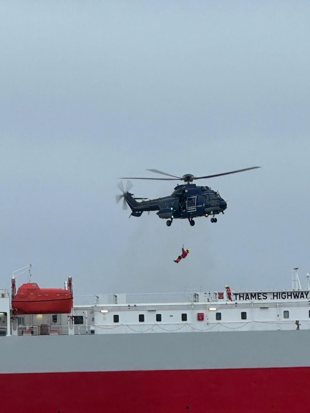 Gegen Mitternacht kam Hilfe: Ein Hubschrauber brachte die ersten Einsatzkräfte an Bord. Sie löschten die Flammen. Zwei Teams speziell ausgebildeter Feuerwehrleute aus Cuxhaven und Wilhelmshaven blieben bis zum späten Vormittag auf dem Schiff, um nach Glutnestern zu suchen. Sie stellten nach eigenen Angaben keine weiteren Brand- und Rauchentwicklungen mehr fest.