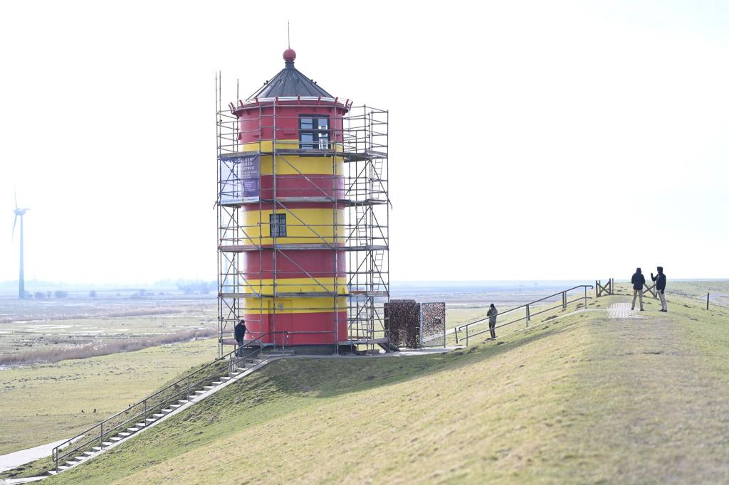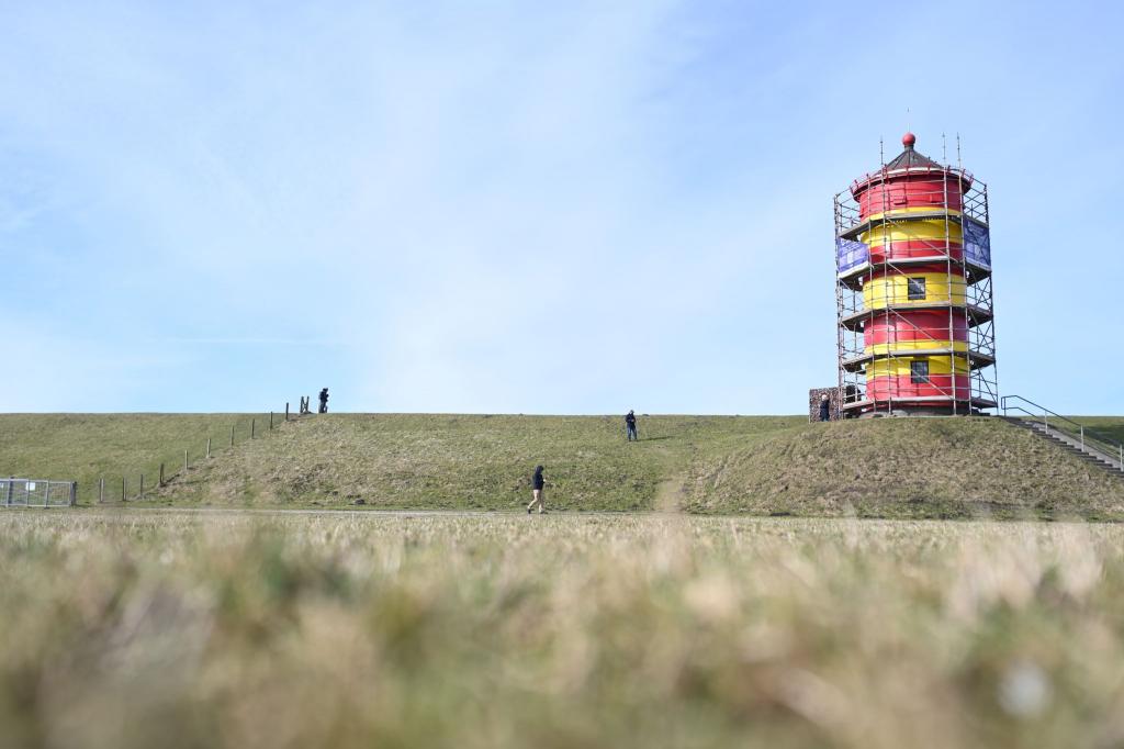 Eines der bekanntesten Wahrzeichen Niedersachsens hat in den vergangenen Tagen einen neuen Farbanstrich bekommen – ein spezieller Metalllack sorgt dafür, dass der Pilsumer Leuchtturm in Ostfriesland trotz rauer Nordseeluft auch weiterhin rot und gelb strahlt. Den Anstrich übernahmen Mitarbeiter der Deichacht Krummhörn (Landkreis Aurich). «Wir kennen ja den Hype um den Turm», sagt der Rendant der Deichacht, Frank Rosenberg. «Wir machen das daher mit ganz viel Freude im Rahmen unserer Möglichkeiten.»