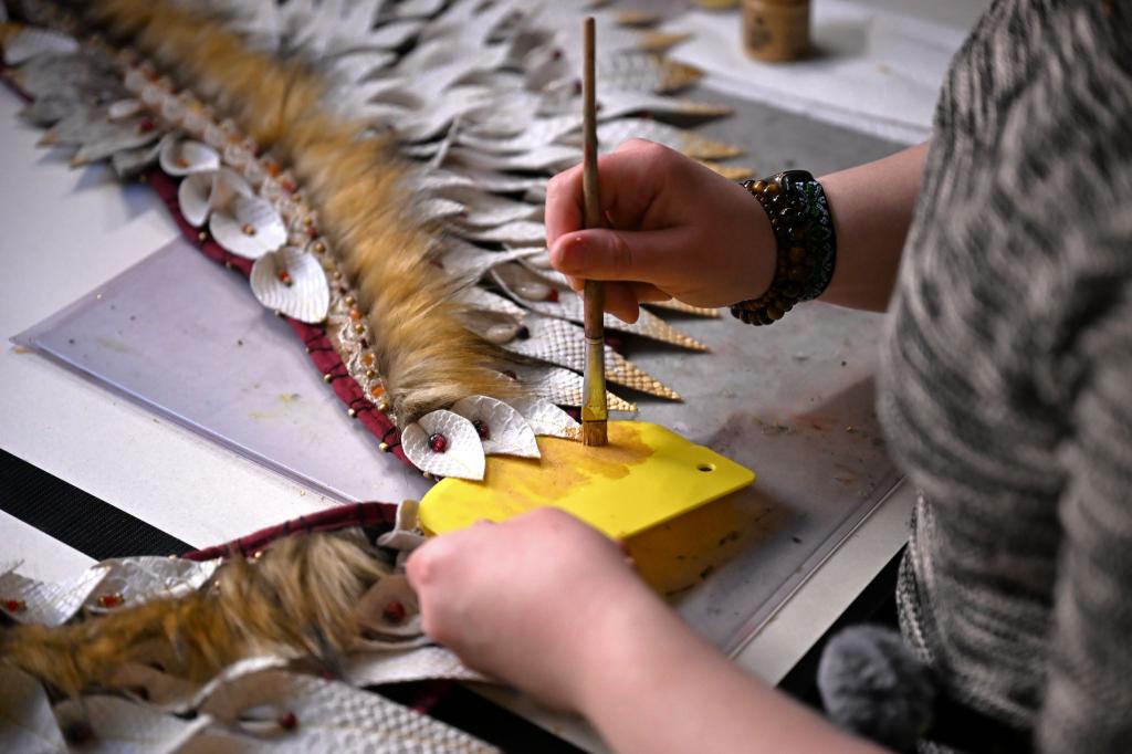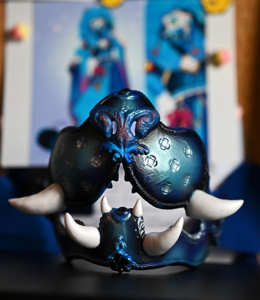 Die Utensilien für ihre Basteleien haben sich bei ihr über die Jahre angesammelt: Zahlreiche Pinsel, Stifte und Scheren stehen neben ihrem Arbeitstisch. Ob Ornamente aus Epoxidharz oder Masken aus einer leichten Modelliermasse: Toni fertigt fast alles in Kleinstarbeit per Hand an - wie viele andere Cosplayer. «Bei mir ist es halt so, dass ich eher Nischensachen mache», sagt Toni. «Ich muss fast alles selber machen, weil es das nicht zu kaufen gibt.»