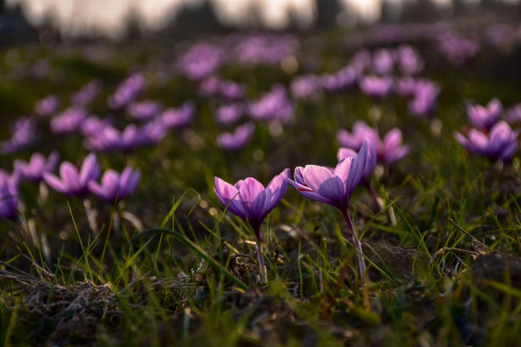 Die Pflanze blüht allerdings nicht im Frühjahr, sondern üblicherweise im Herbst. Geerntet werden die leuchtend roten Safranfäden mit einer Pinzette aus der Mitte der Blüte. Für ein Gramm getrockneten Safrans, der etwa zum Würzen von Paella, Risotto oder Curry verwendet wird, werden nach Angaben der Königlichen Gartenbaugesellschaft in London etwa 150 Blüten benötigt. In Deutschland wird der Krokus selten angebaut, am meisten im Iran.