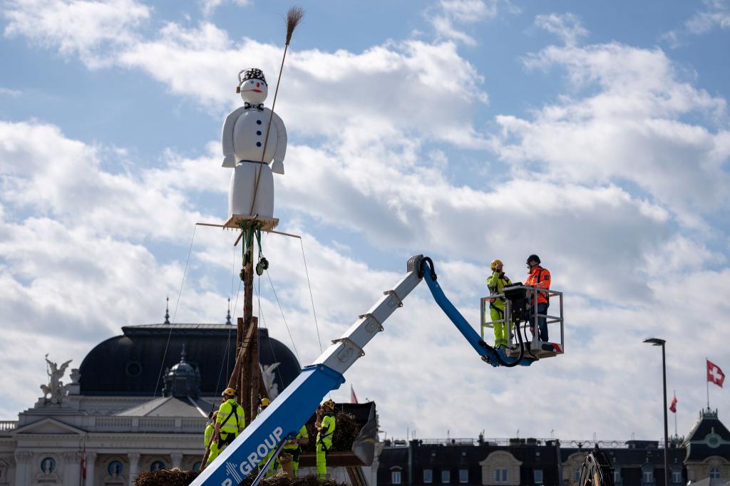 Beim Sechseläuten-Fest ziehen erst Tausende Mitglieder der Zünfte mit Kostümen, Musik und Pferden durch die Straßen. Zehntausende Schaulustige sind dabei. Die Zunftvertreter sammeln sich schließlich auf dem Sechseläutenplatz nahe des Zürichsees, wo der fast vier Meter hohe «Böögg» auf einem Holzstoß angezündet wird.