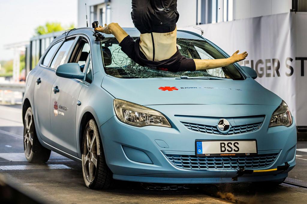 «Was wir hier haben sind schwerste Kopfverletzungen, viele Knochenbrüche, wahrscheinlich auch ein Genickbruch», sagt Siegfried Brockmann. Der Leiter der Unfallforschung bei der Björn Steiger Stiftung hat sich nach der Kollision über die zerschrammte Puppe gebeugt und stellt fest: Ein Fußgänger hätte wohl keine Chance gehabt.