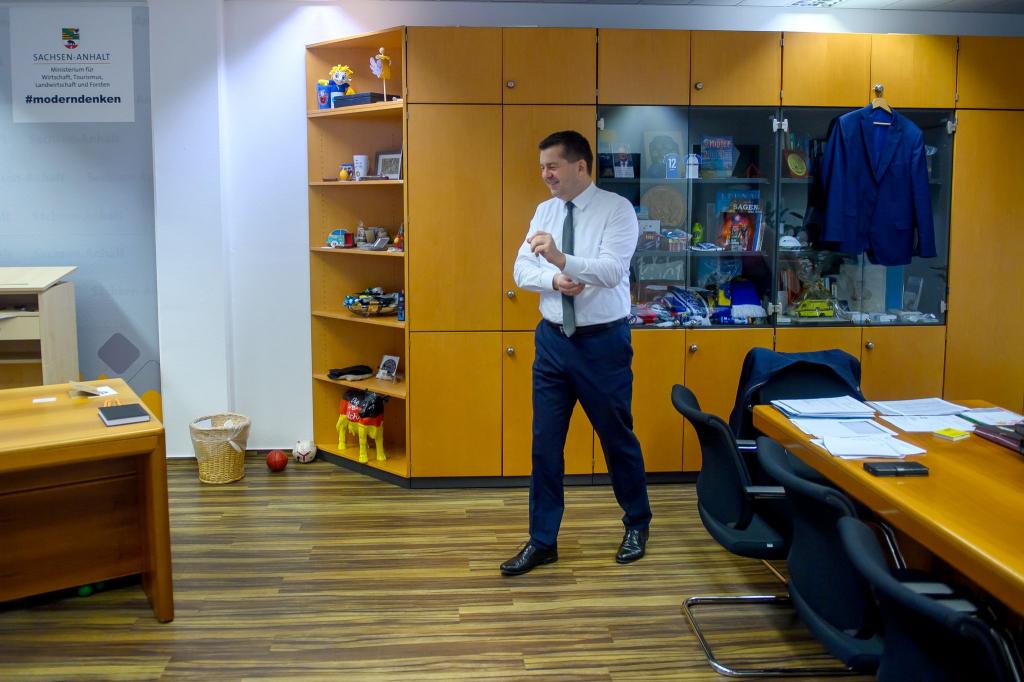 Sven Schulze dribbelt gerne. In seinem Büro liegen mehrere kleine Bälle im Raum verstreut. Beim Telefonieren läuft der 46-Jährige bisweilen mit einem Ball am Fuß durchs Zimmer - kurzes Dribbling um den Konferenztisch, dann Torschuss auf die Bürotür. Nun hat der CDU-Politiker ein neues Tor im Blick - er zieht vom Wirtschaftsministerium als Ministerpräsident in die Magdeburger Staatskanzlei. Schulze hat gut sieben Monate Zeit, auf diesem Spielfeld unter Beweis zu stellen, dass er als Mannschaftskapitän die Landesregierung führen kann. Der Hauptgegner, den es auszudribbeln gilt: eine starke AfD, die in Sachsen-Anhalt eine Alleinregierung anstrebt.