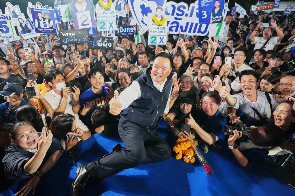 Spitzenkandidat der PP ist der Computer-Ingenieur und Unternehmer Natthapong Ruangpanyawut (38). Eine wichtige Rolle im Wahlkampf spielte aber erneut der beliebte Ex-Oppositionsführer Pita Limjaroenrat. Er trat bei Wahlkampfveranstaltungen auf und mobilisierte Wähler, darf wegen eines gerichtlichen Politikverbots jedoch nicht selbst kandidieren.