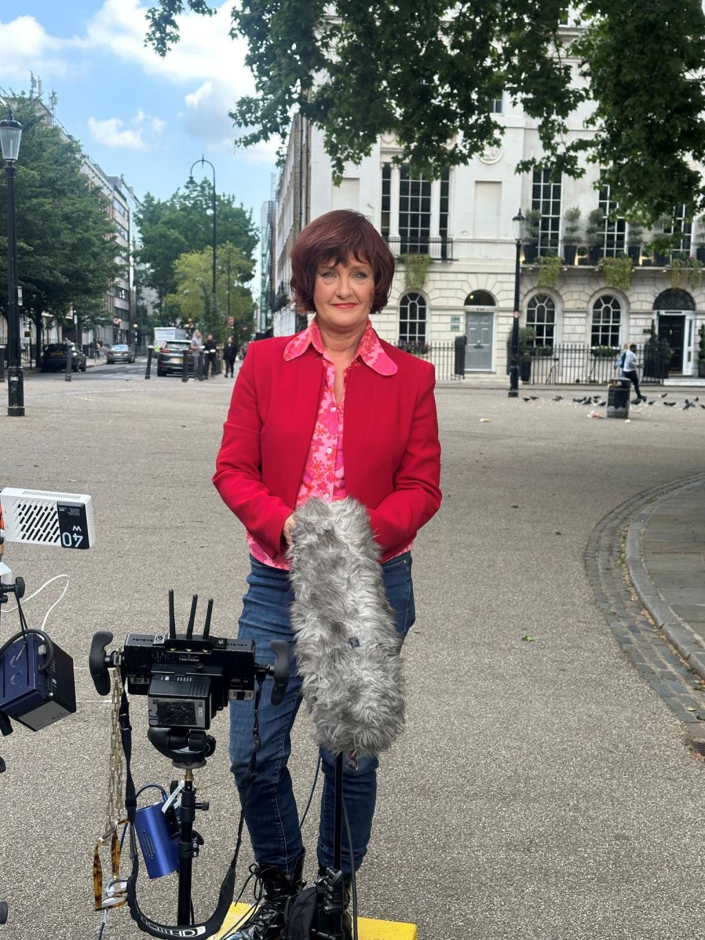 Fast zwei Jahrzehnte lang war sie eine der bekanntesten deutschen Stimmen an der Themse, hat den ARD-Zuschauern die Briten und den Brexit erklärt, schrullige Schlossherren auf Fuchsjagd interviewt und die historische Nachricht vom Tod der Queen überbracht. Ihre scharfen Beobachtungen mischte sie stets mit einer Prise Humor. Ihre Garderobe - so bunt und verspielt wie ein Korallenriff - brachte Farbe ins oft graue Westminster.