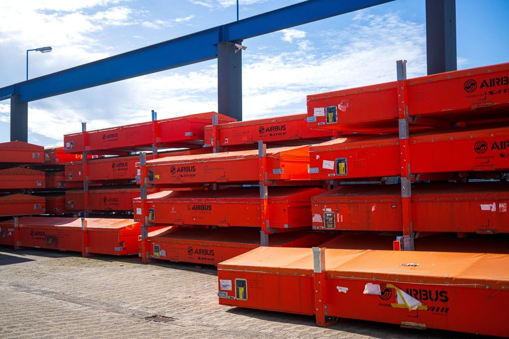 Vor der Werkhalle stapeln sich überdimensionale, orangefarbene Kisten. Darin warten die beschädigten Flugzeugteile auf ihre Reparatur. «Als Erstes geht es in die Inspektion», erklärt Klautke. «Wir schauen uns genau an: Was ist kaputt? Gibt es Korrosion? Ist die Beschichtung beschädigt?»