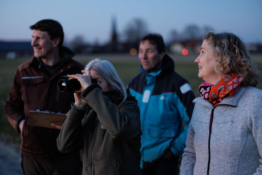 Die sechs Helfer bei der Zähltour in Brockum nehmen an diesem Abend ein besonderes Natur- und auch Klangerlebnis mit. Für manche sind es erste Erfahrungen mit dem Revierruf des Hahns, der jetzt sicher zugeordnet werden kann.