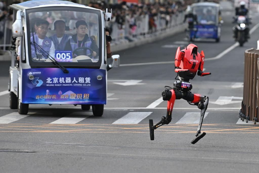 Bei einem Halbmarathon in China sind Roboter der menschlichen Konkurrenz erstmals davongelaufen. In Peking überquerte die ferngesteuerte Version des Humanoids «Blitz» aus dem Team des Smartphone-Herstellers Honor trotz eines Sturzes kurz vor dem Ende nach 48 Minuten und 19 Sekunden als erster die Ziellinie, wie im Staatsfernsehen zu sehen war.