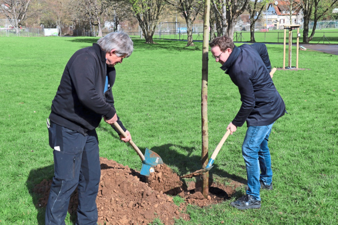 OB Fridrich und Bernd Hiller pflanzten einen Rotahorn.