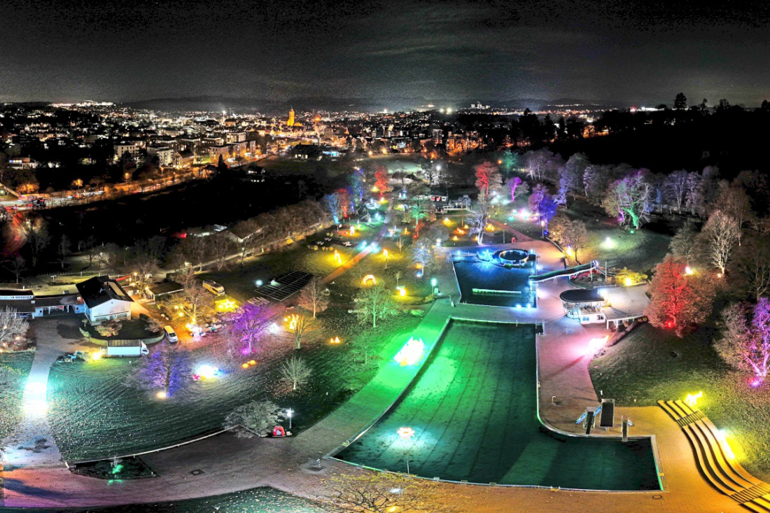 Enikö und Michael Grözinger haben das Gelände des Freibads in Nürtingen in eine bunt illuminierte Winterwunderwelt verwandelt. Was die ersten Gäste zu dem Lichterzauber sagen.