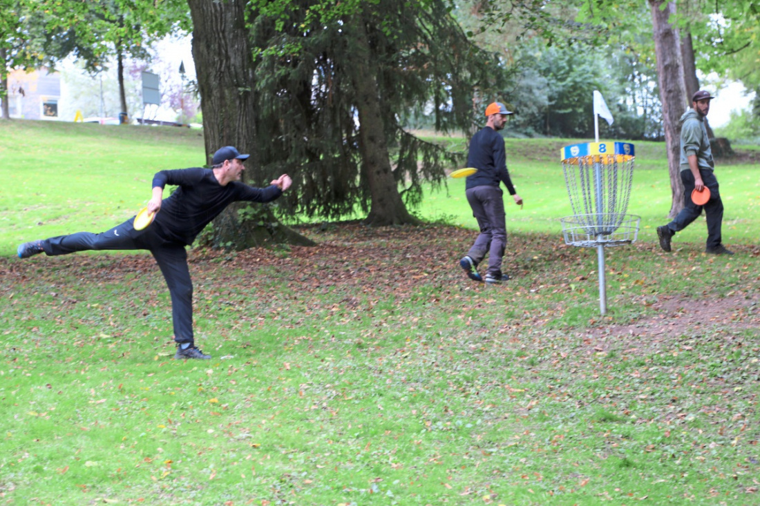 Im Galgenbergpark und im Freibad traten am Wochenende 70 Spieler beim Discgolf-Turnier gegeneinander an. Trotz des regnerischen Wetters ließen sich die Spieler den Spaß nicht vermiesen.