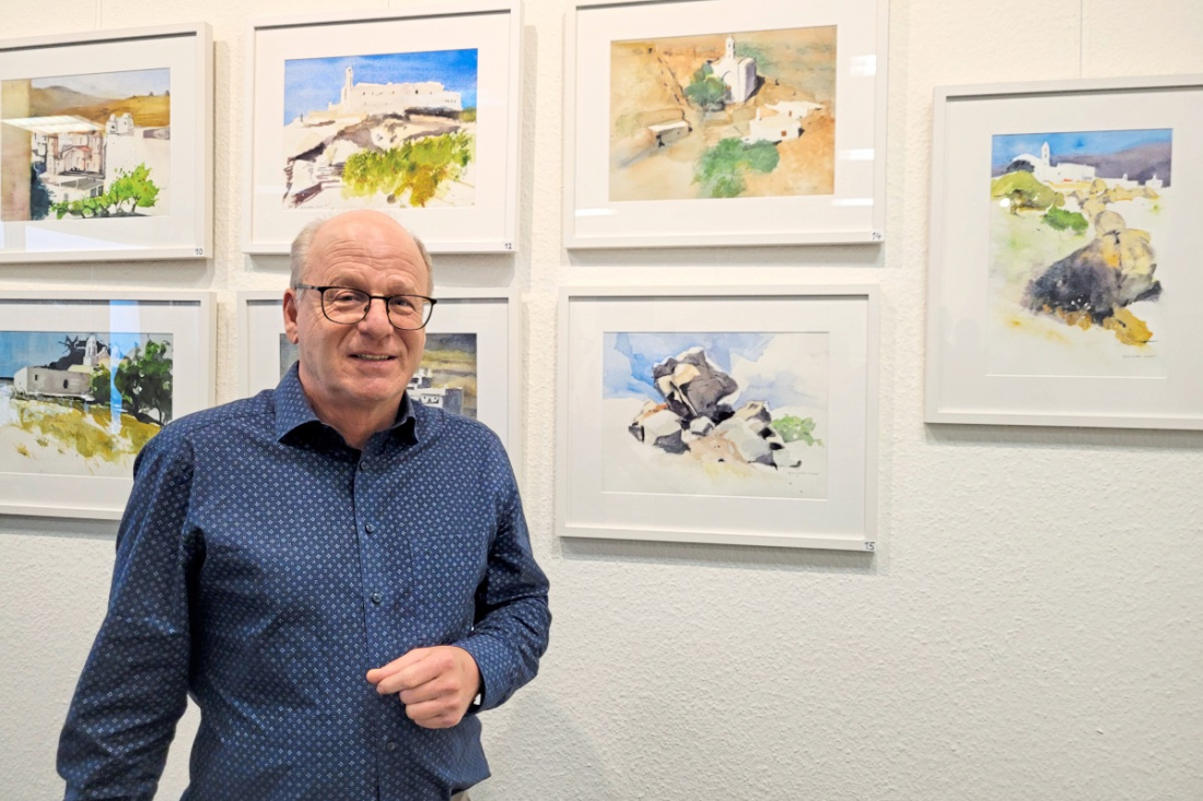 Im Nürtinger Kulturcafé Sprech-Zimmer zeigt Andreas Neureuther in der Ausstellung „Von nah und fern“ Aquarelle. Zur Eröffnung gab er im Gespräch mit dem Redaktionsleiter der Nürtinger/Wendlinger Zeitung, Kai Müller, Einblick in sein Schaffen.
