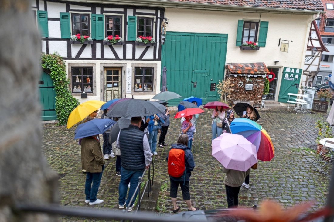 Der anfängliche Regen tat der guten Stimmung bei der Stadtführung keinen Abbruch.Foto: Felix Fröhlich