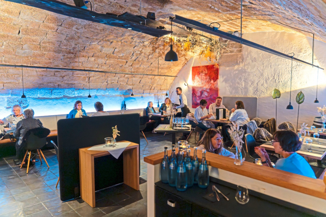 Marc Horlacher begrüßte in seiner Vino Vino Bodega die Schlemmerspaziergang-Teilnehmer und bot Aperitif und Vorspeise an.Foto: Felix Fröhlich