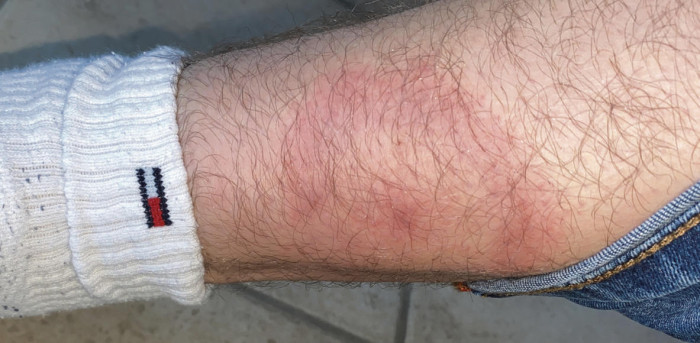Da juckt doch was. Ein Mückenstich? Bei genauerem Hinsehen zeigt sich ein kleines Krabbeltier, das kopfüber in der Haut steckt. Eine Zecke hat sich festgesetzt. Die lästigen Tierchen gehören zur Klasse der Spinnentiere und ernähren sich von Blut. Sie lauern auf Gräsern und Büschen und lassen sich von Tieren und auch Menschen abstreifen.