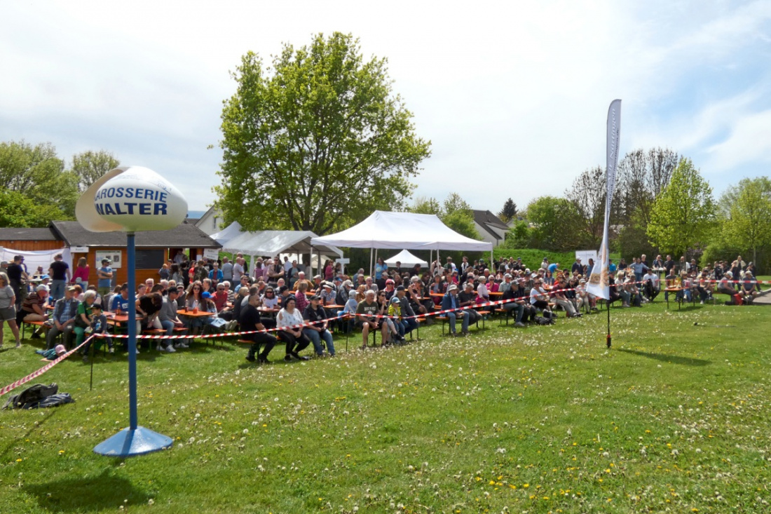 NT-HARDT. Die Sonne steht hoch über der Wiese, als ein massiver Baumstamm durch die Luft fliegt, sich einmal überschlägt und mit einem dumpfen Schlag im Gras landet. Für einen Moment hält das Publikum den Atem an – dann brandet Applaus auf. „Und jetzt alle nochmal anfeuern!“, ruft Moderator und Trainer