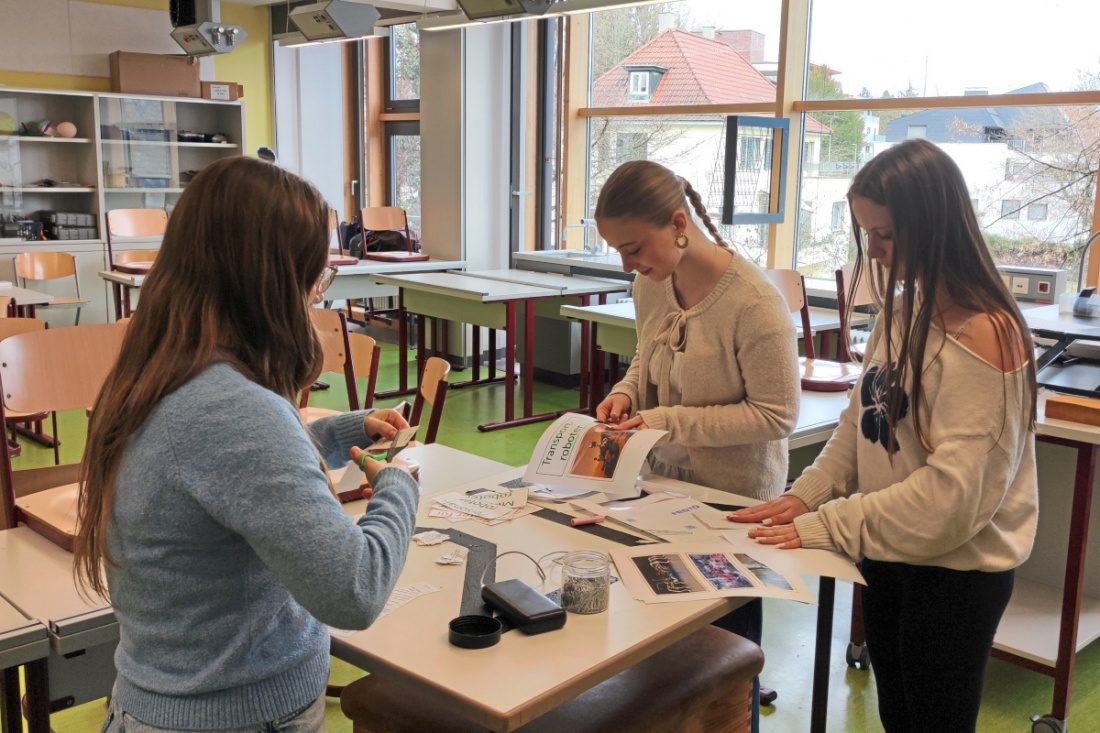 Die drei Elftklässlerinnen Klementina Schlegel, Sarah Schnizler und Maren Hengsteler bereiten den Bionik-Hector-Kurs vor. Foto: Kseniia Ilina