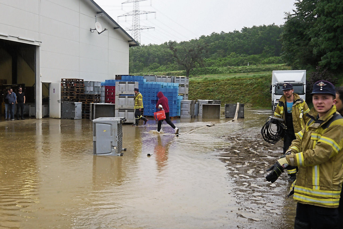 Das Unwetter gestern Abend hielt die Einsatzkräfte der Feuerwehr auf Trab. Ein Stromausfall in der Kläranlage Bempflingen sorgte für einen Großeinsatz der Bempflinger Feuerwehr. Rund 45 Hilfskräfte mussten anrücken, um das Klärbecken abzupumpen, das aufgrund des Starkregens vollgelaufen war (oben). „Dadurch, dass die Kläranlage nicht richtig funktioniert, gibt es einen Rückstau des Wassers, ...