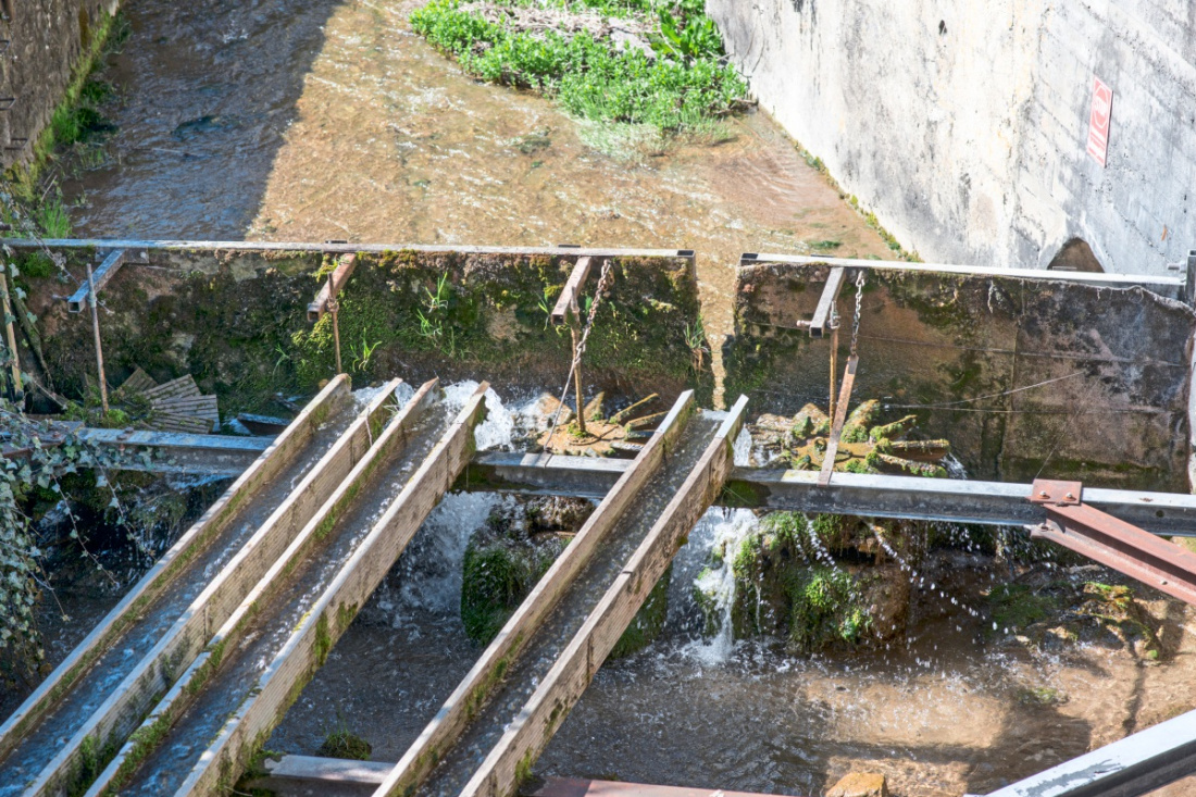 Das Wasser treibt die Räder an. Im Inneren liegen die Rohlinge der Kugeln, die sich aneinander abreiben.Foto: Peter Dietrich