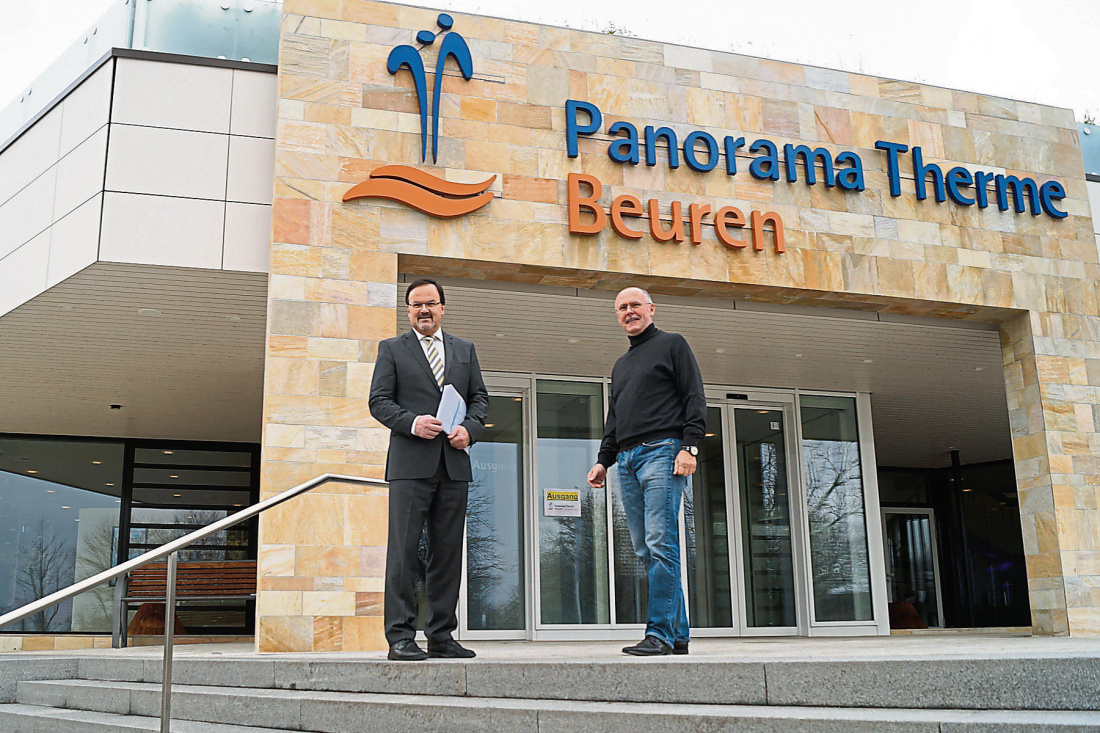 BEUREN. Das Ergebnis einer großen Umbaumaßnahme an der Panorama-Therme präsentierten gestern Beurens Bürgermeister Erich Hartmann und der Nürtinger Architekt Norbert Morgenthaler. Der Eingangsbereich wurde erheblich erweitert und in diesem Zuge komplett umgestaltet.