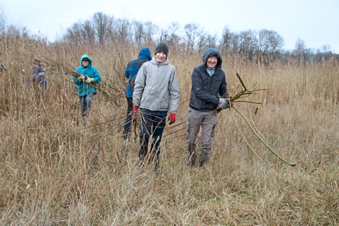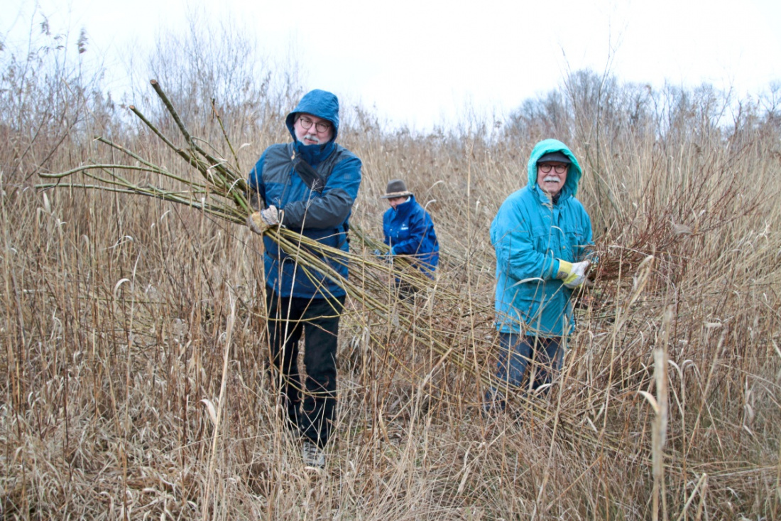 Freiwillige helfen beim Pflegeeinsatz im Naturschutzgebiet Wernauer Baggerseen