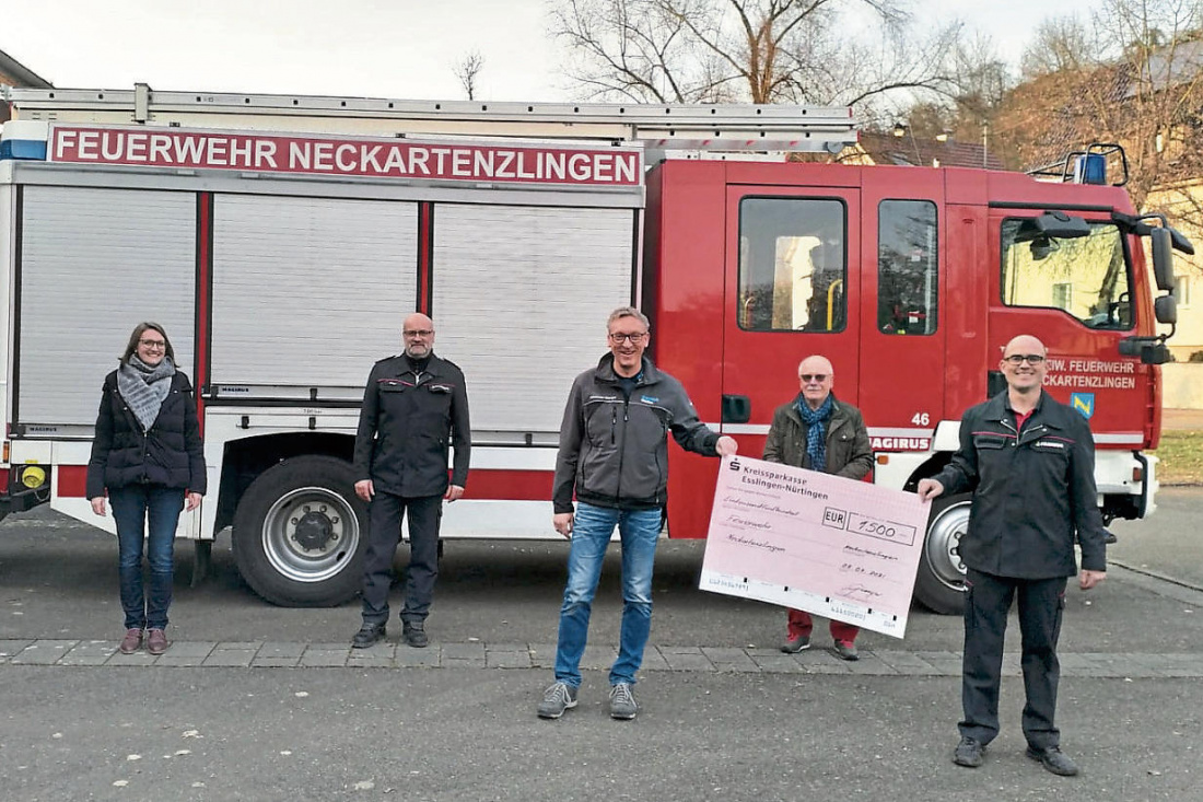 Peter Reif, Kommandant der Freiwilligen Feuerwehr Neckartenzlingen, sein Stellvertreter Christian Schöllhammer und Bürgermeisterin Melanie Braun konnten jüngst einen Scheck in Höhe von 1500 Euro von der Firma Gienger Metallbau aus Neckartenzlingen in Empfang nehmen. Diese Firma gibt jedes Jahr anstelle von Weihnachtsgeschenken für die Kunden eine Spende an gemeinnützige Organisationen. Dieses Mal ...
