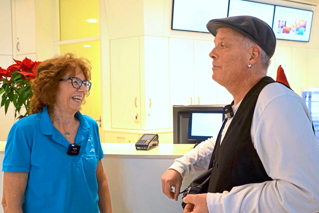 BEUREN. Der Neuffener Kabarettist und Comedian LinkMichel alias Michael Klink ist eine echte schwäbische Schwertgosch, Träger des Sebastian-Blau-Preises für schwäbische Mundart. Der Comedian ist gern „den Skurrilitäten des Alltags“ auf der Spur. Aber wie schlägt sich der Mundartkünstler eigentlich, wenn er auf örtliche Honoratioren oder den Otto-Normal-Verbraucher oder die Martha-Durchschnitts-Verbraucherin aus dem Neuffener Tal trifft? Wir wollen es genau wissen und haben daher eine Video-Reihe unter dem dazu perfekt passenden Titel „Michel will‘s wissen“ ins Leben gerufen. Immer mittwochs um 12 Uhr wird auf ntz.de eine neue Folge erscheinen. In der Folge am 31. Dezember will LinkMichel mal vor Weihnachten so richtig in der Panorama-Therme ausspannen. Doch der Kabarettist hat einige seltsame Fragen. Gut, dass es Sandra Koch gibt. Die Mitarbeiterin der Therme kann ihm bei fast allen Fragen weiterhelfen.