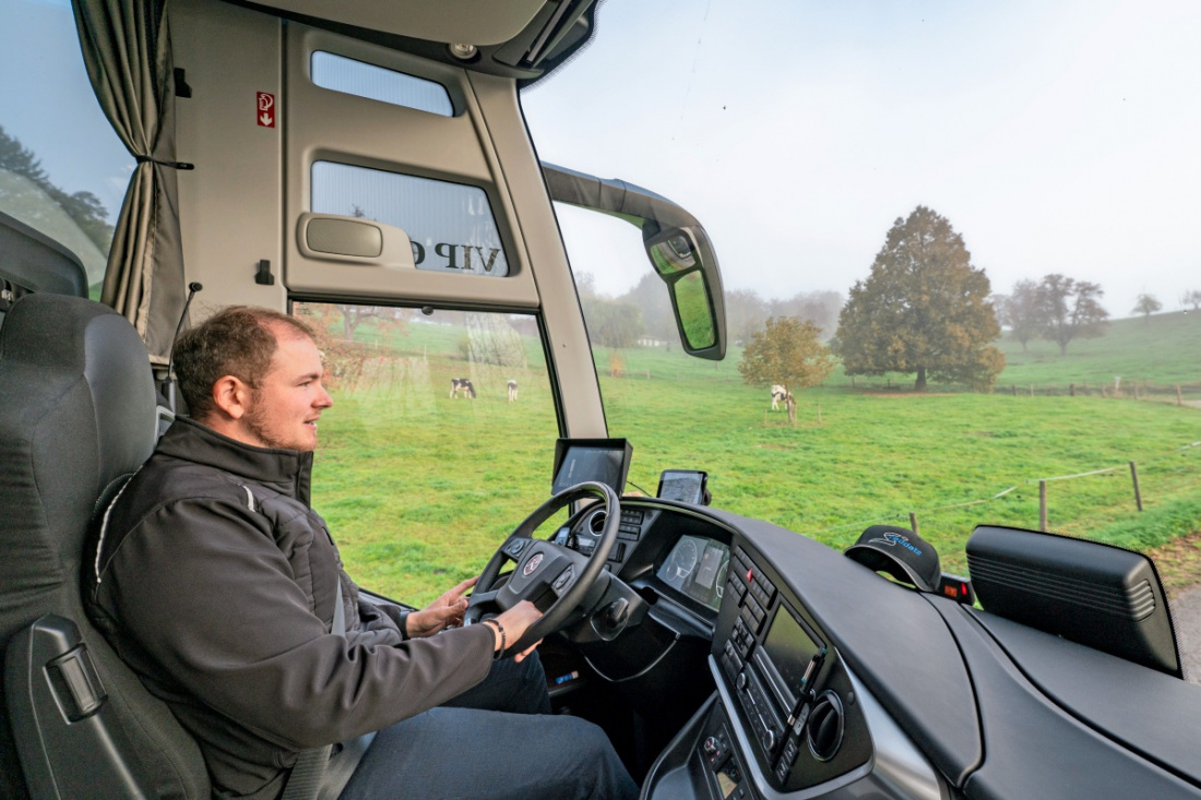 Kevin Raddatz führt zwar den Familienbetrieb in Oberboihingen, aber er liebt es, Fahrgäste kreuz und quer durch Europa zu kutschieren. Besonders viel Spaß macht es ihm in einem neuen Reisebus, der noch ziemlich selten auf den Straßen ist.