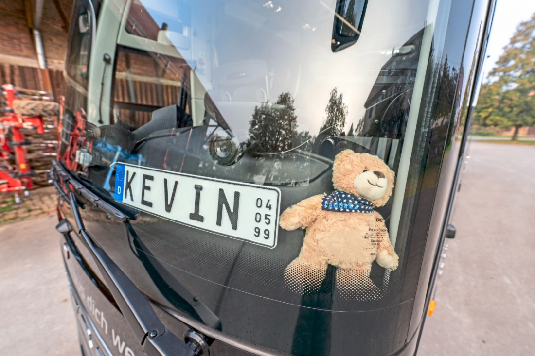 Jeder Bus hat einen Namen. Der neue Reisebus hat nicht nur immer einen Teddybären dabei, er heißt auch wirklich „Teddy“. Foto: Ralf Just