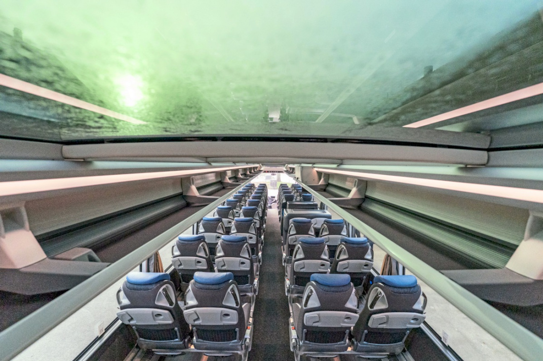 Der Bus verfügt über eine 13 Meter langes Glaspanorama-Dach. Foto: Ralf Just