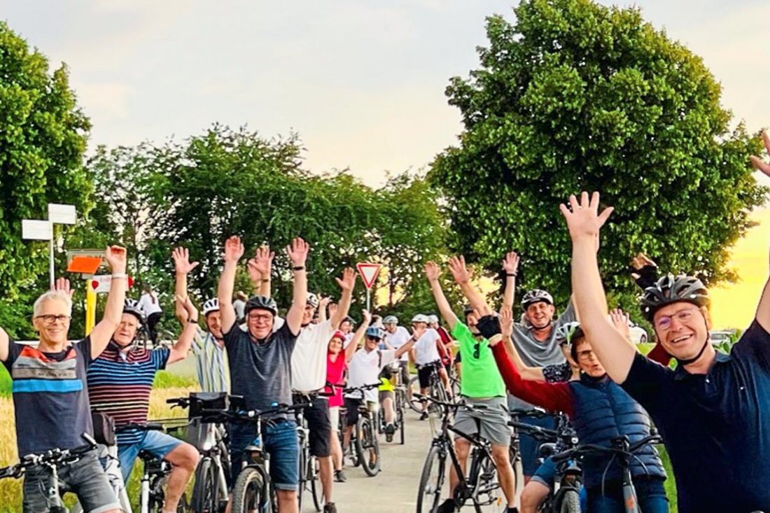 Otto Ruppaner (vorne rechts) ist gerne mit dem Rad unterwegs. Und gerne hat er auch die Bürger von Köngen mitgenommen.Foto: pm
