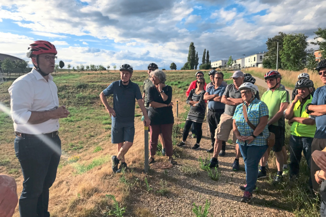 Mit den Bürgern unterwegs zu aktuellen Köngener Projekten: das ließ sich Otto Ruppaner in den Sommermonaten nicht nehmen.Foto: Sylvia Gierlichs