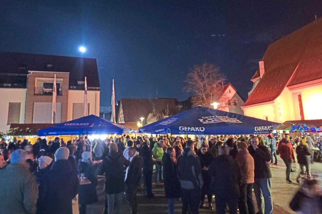 Viele Besucher kamen zur Fleckenweihnacht in der stimmungsvollen neuen Ortsmitte von Frickenhausen. Foto: Sara Hiller