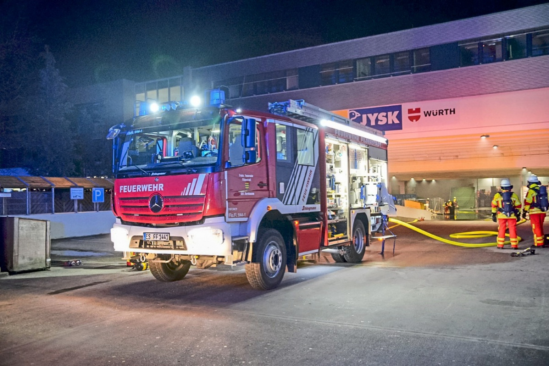FILDERSTADT. Bei einem Brand im Außenbereich eines Einkaufszentrums in der Plieninger Straße in Filderstadt am Freitagabend ist nach ersten Schätzungen ein Schaden in Höhe von mehreren hunderttausend Euro entstanden. Gegen 18.40 Uhr gerieten aus bislang ungeklärter Ursache im Außenbereich des Marktes gelagerte Waren in Brand, was zu einer starken Rauchentwicklung im Gebäude und Auslösung der Brandmeldeanlage führte. Mehrere Kunden, die sich im Einkaufszentrum aufhielten, verließen daraufhin das Gebäude und blieben unverletzt. Die alarmierten Kräfte der Feuerwehr, die mit 13 Fahrzeugen und 65 Einsatzkräften vor Ort waren, konnten das Feuer löschen und ein Übergreifen auf das Gebäude verhindern. Aufgrund der Löschmaßnahmen war die Plieninger Straße im Bereich des Einkaufsmarkts bis gegen 21 Uhr für den Verkehr gesperrt. Das Polizeirevier Filderstadt hat die Ermittlungen zur Brandursache aufgenommen.
