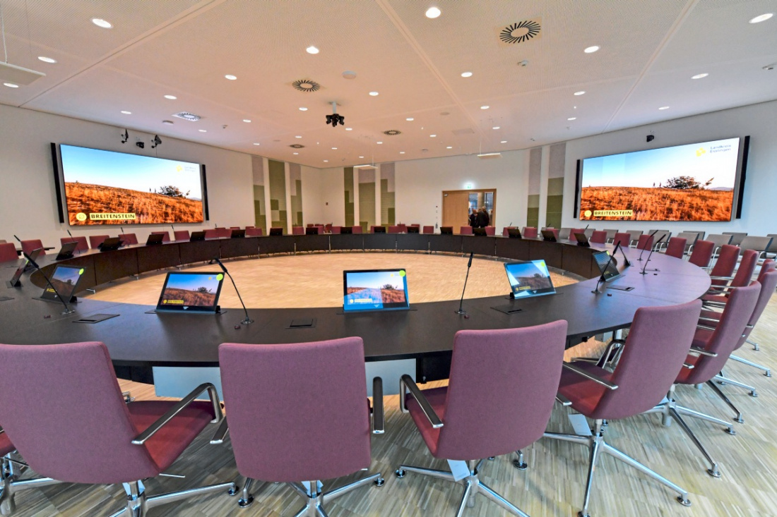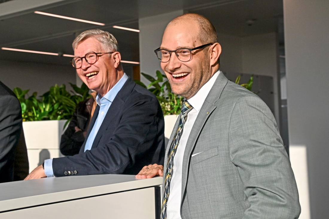 Bei der Schlüsselübergabe durch die Firma Züblin ging Landrat Marcel Musolf auf die nachhaltige Bauweise des Gebäudes mit Baukosten von 143,6 Millionen Euro ein. Im Mai wird zum Tag der offenen Tür eingeladen.