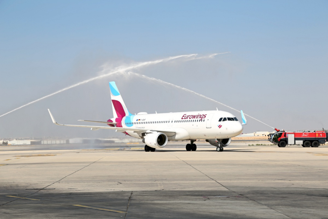 Neue Flugverbindung von Eurowings wird vorgestellt. Erfolgreicher Erstflug in den Nahen Osten.