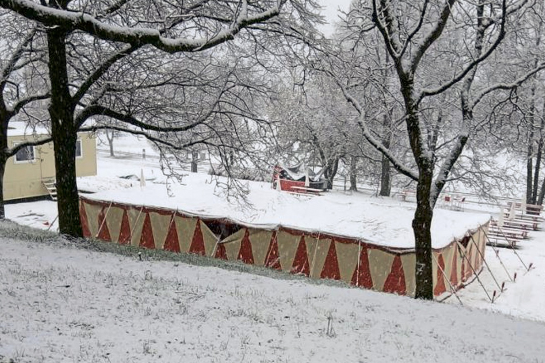 Masten von Zirkuszelt in Lenningen knicken unter Schneelast ein