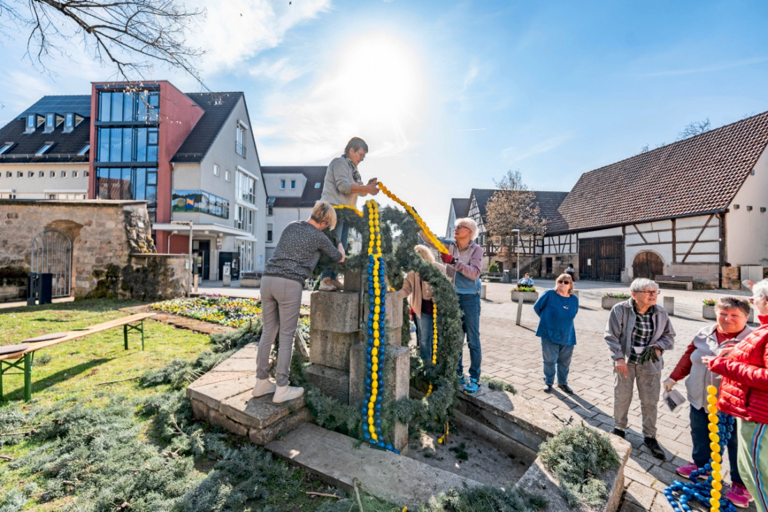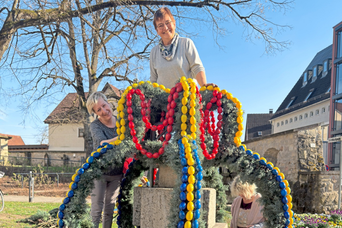 Am Donnerstag haben 15 Frauen den Feuerwehrbrunnen in der Ortsmitte österlich verziert. Am Samstag, 21. März, wird der Brunnen um 10 Uhr feierlich übergeben.
