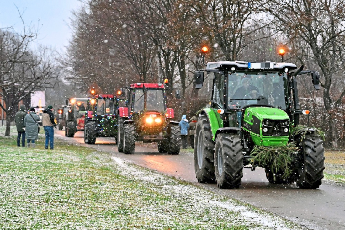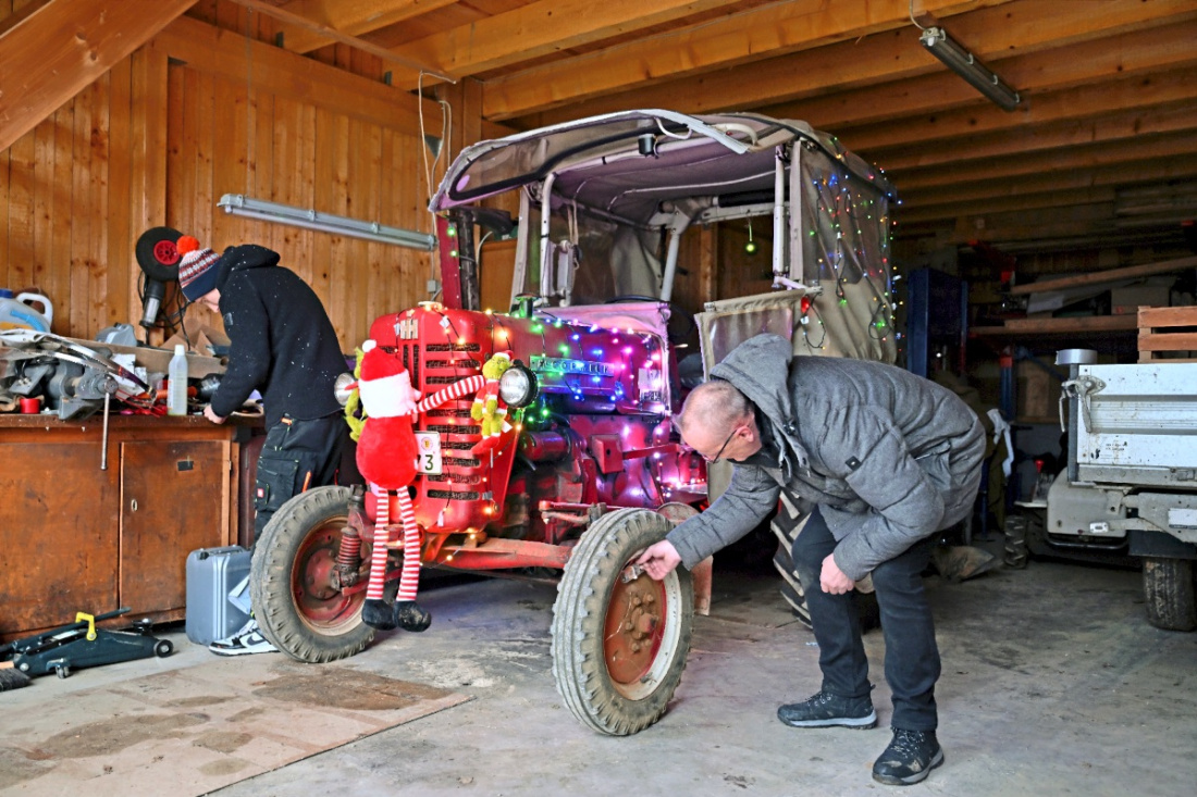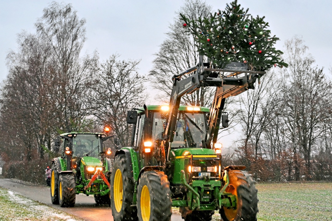 Festlich geschmückte Traktoren sorgen für Weihnachtsstimmung in Frickenhausen