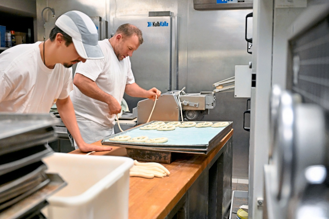 Damit über die Feiertage genügend Brezeln, Brötchen und andere Backwaren in den Häusern sind, wird in den Backstuben gewirbelt. Wir haben die Bäckerei Bohnacker in Oberlenningen besucht, die in Linsenhofen eine Filiale betreibt.