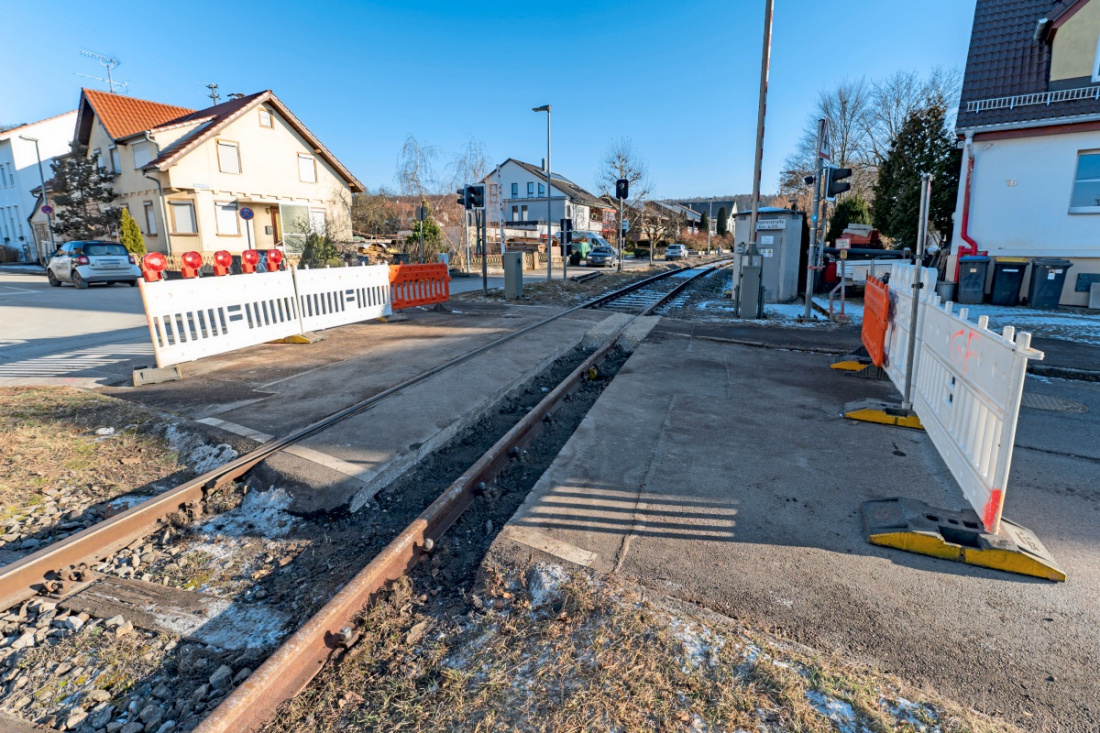Die provisorische Reparatur des Schadens am Bahnübergang „Ziegeleistraße“ in Frickenhausen soll noch am Montagabend abgeschlossen werden.