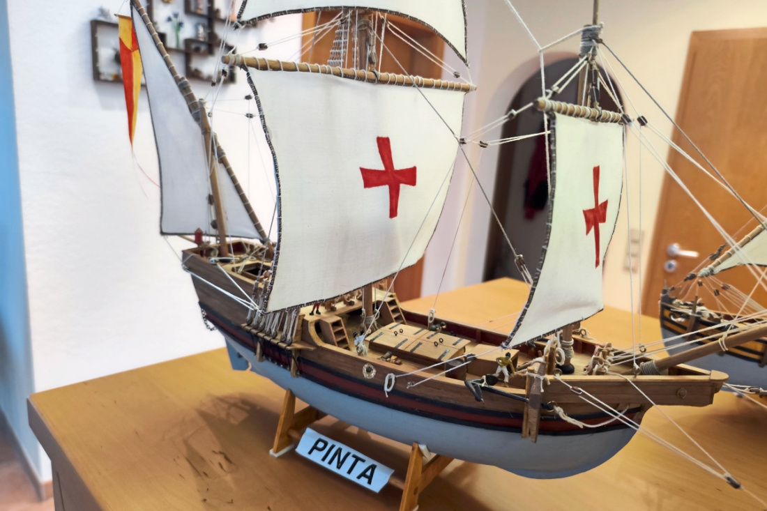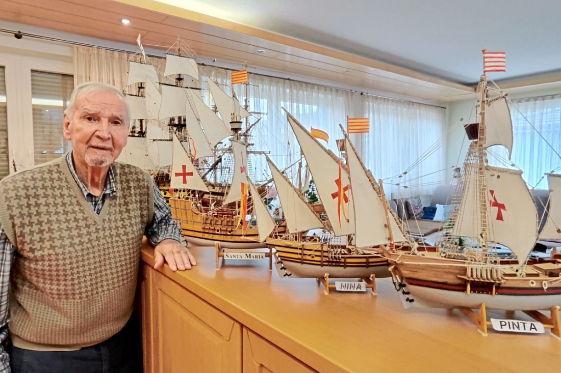 Karl Wahl aus Neuffen hat eine Columbus-Flotte fürs Wohnzimmer gebaut