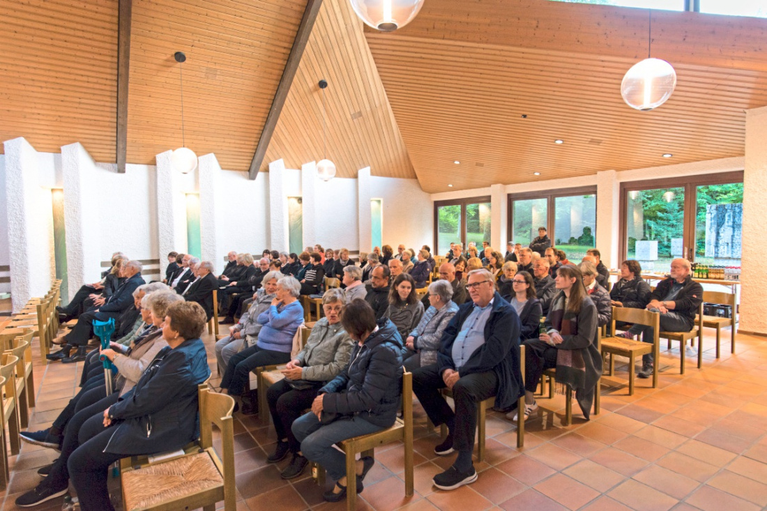 Wiedereröffnet wurde die sanierte Aussegnungshalle auf dem Waldfriedhof in Wolfschlugen mit einem ökumenischen Gottesdienst.Foto: Peter Dietrich