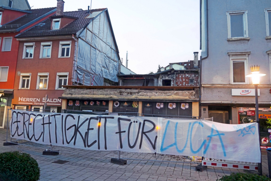 Ein Jahr nach dem gewaltsamen Tod von Luca S. erinnern Transparente in der Esslinger Innenstadt an den Verstorbenen und üben Kritik an der Polizei. Was steckt hinter der Aktion?