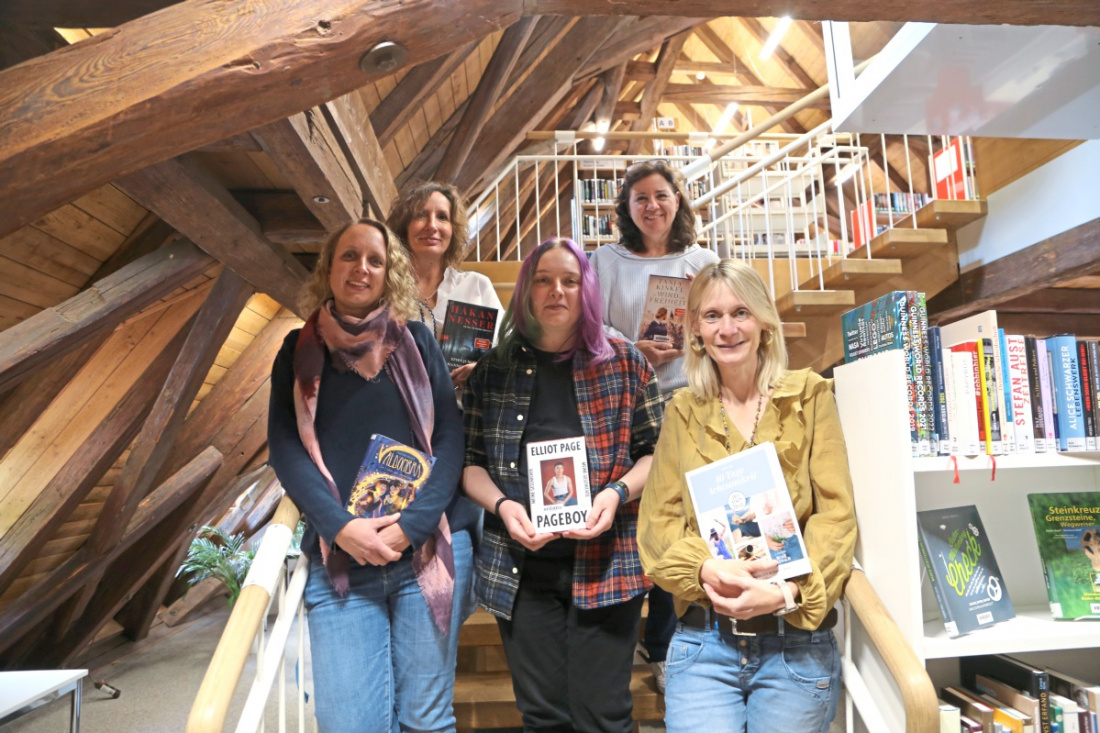 Die Liebe zu den Büchern eint sie, der Geschmack ist verschieden. Lena Rüb, Carmen Dreizler, Noah Hahn, Daniela Bielicke-Oberer und Tanja Ley (von links). Foto: Sylvia Horlebein