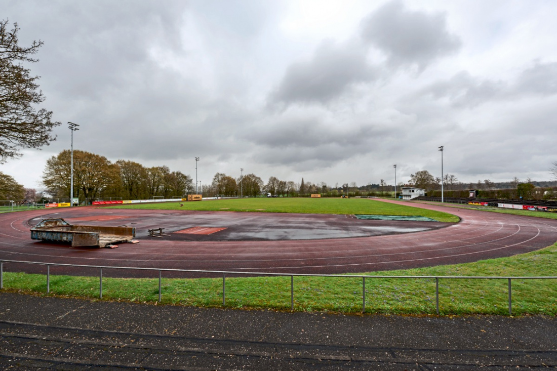 Sportplatz wird grundlegend saniert – neben der Tartanbahn wird nun auch der Rasenplatz erneuert.
