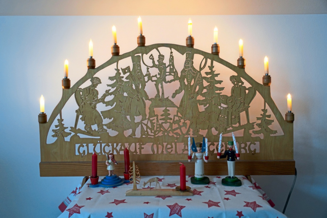 Der Gruß „Glückauf“ auf dem Schwibbogen ist ein Verweis auf den Bergbau in Sachsen, dem Bundesland, das eine lange Tradition im Erzbergbau hat.Foto: Nicole Mohn